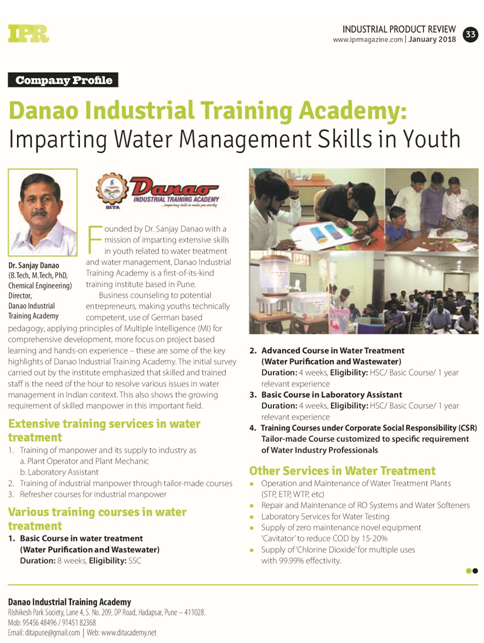 IPR Magazine has taken the note of the activities of imparting skills in water management